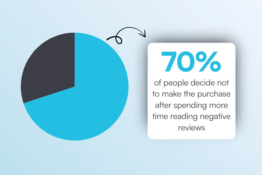 And the risk is more than reputational. In a 2022 study by Frontiers in Psychology, researchers found that when participants spent more time reading negative reviews, 70% chose not to make the purchase. The takeaway is that people don’t just notice bad feedback… they act on it.
