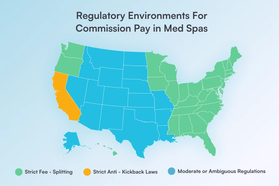 Figuring out commission structures in a medical spa can feel like trying to solve a Rubik’s cube blindfolded. Pay too little, and your team isn’t motivated. Pay too much, and suddenly, your profit margins are gasping for air. Somewhere in between is the sweet spot, but how do you find it?A good commission structure can keep your team motivated, help you retain top talent, and boost your bottom line. But med spas aren’t like regular salons—there are legal rules to follow before you start paying commissions.This guide will break it all down – how commission works, what to consider, and how to stay compliant. No confusing jargon, just clear and practical advice to help you get it right. ⚠️ DisclaimerThis article is for informational purposes only and should not be considered legal advice. Always check with a qualified attorney or compliance expert before making changes to your compensation structure. Can med spas legally offer commission-based compensation? Short answer: It depends on where you’re located. Unlike traditional spas, which operate more like retail businesses, med spas are classified as medical practices. That means they have to follow stricter regulations when it comes to paying employees – especially when commissions are involved.Many states have laws that limit or outright prohibit commission-based pay for medical services. If your med spa is structured incorrectly, offering commissions could put you at risk of legal issues. The key takeaway? Before rolling out a commission structure, you need to understand your state’s specific compensation rules. States with fee-splitting statutes One of the biggest legal hurdles for commission-based pay in med spas is fee-splitting laws. These laws prohibit medical professionals from sharing fees with non-licensed individuals or entities in exchange for referrals or services. The idea is to prevent financial incentives from influencing medical decisions – but they also impact how med spa employees can be paid.Several states, including California, New York, and Illinois, have strict fee-splitting rules that could make commission-based pay risky. Even if a state doesn’t explicitly prohibit fee-splitting, its medical board may still view commissions as unethical or unprofessional conduct. This means med spa owners must be extra careful when structuring employee compensation. States with anti-kickback laws Anti-kickback laws are designed to prevent healthcare providers from receiving or offering any compensation for patient referrals or for the purchase of services or goods.Some states interpret commission-based pay as a form of kickback – especially if it’s tied to treatments performed by licensed medical professionals.Federal Anti-Kickback Statute (AKS) is a federal law that applies to all states and prohibits offering or receiving any form of payment or commission for referrals of healthcare services or the purchase of items that are reimbursed by government health programs (like Medicare or Medicaid).Med spas, especially those that accept government health insurance, need to ensure they comply with this law.So what’s the safest approach? Consult a healthcare attorney before implementing any commission-based pay to ensure you’re in the clear. Types of commission structures in med spas Once you’ve navigated the legal side of things, the next step is choosing a commission structure that works for your med spa. There’s no one-size-fits-all approach – some models are simple and predictable, while others are designed to push performance. Flat rate commission A flat-rate commission means employees earn a fixed dollar amount per service or product sold—no percentages, just a set payout. For example:$20 per laser hair removal session sold$10 per skincare product soldThis method keeps things simple, making payroll predictable and easy to manage. With an all-in-one practice management software like Pabau, you can easily manage booking and scheduling, record keeping, payment processing, as well as commission tracking. With this feature commission you can set up and automate flat-rate payouts seamlessly – no spreadsheets or manual calculations needed.Pros:Easy to calculate and trackPredictable costs for business ownersEncourages employees to sell specific services or productsCons:May not incentivize high-value salesEmployees might prioritize quantity over quality Percentage-based commission With a percentage-based model, employees earn a cut of the revenue from each service or product they sell. For example:15% commission on Botox services10% commission on skincare product salesThis structure is great for incentivizing employees to sell higher-value treatments since their earnings increase with the price of the service. Most med spas set commission rates between 10-20%, depending on the service type and profit margins.Pros:Aligns employee earnings with revenue growthEncourages higher-value sales and upsellingCons:Can lead to unpredictable payroll costsNeeds careful planning to maintain profit margins Tiered commission systems Tiered commission structures reward employees for hitting sales or service milestones. Instead of a fixed percentage, commission rates increase as sales go up. Here’s an example:10% commission on sales up to $5,00015% commission on sales between $5,001–$10,00020% commission on sales above $10,000This system creates a built-in incentive for employees to go the extra mile—the more they sell, the more they earn. It’s especially effective in med spas with strong retail products offerings or premium service packages.Pros:Motivates employees to sell moreHelps drive higher revenueCons:Can be complex to manage without the right softwareEmployees may focus too much on hitting targets rather than client care Hybrid models A hybrid commission model combines hourly rate or salary with performance-based commissions. This setup provides financial stability while still rewarding employees for br