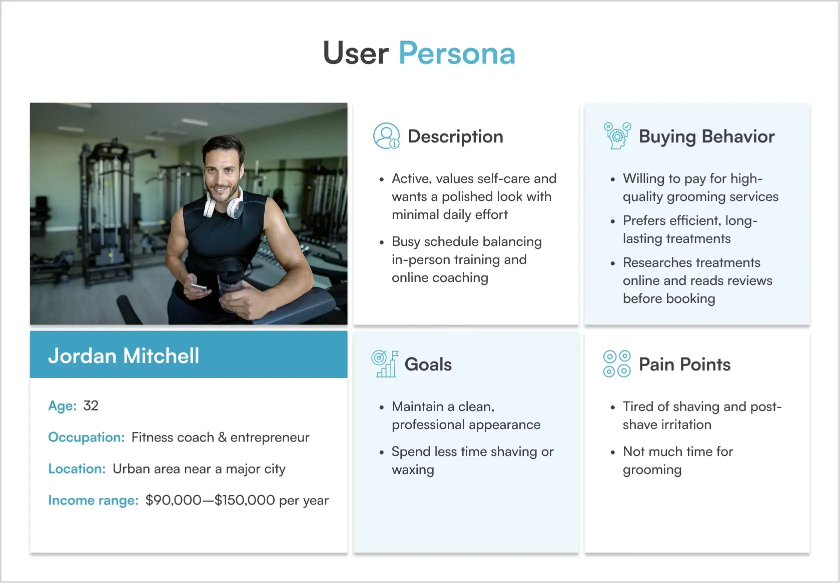With more people trading razors and wax strips for longer-term solutions, the demand for laser hair removal services is booming.But here’s the thing: so is the competition.New clinics are opening left and right, and standing out in a crowded market takes more than guesswork — it takes smart, intentional marketing.Whether you’re trying to fill your schedule or boost repeat visits, how you market your services matters.Before discounting your services or throwing money at social media ads and hoping for the best, let’s talk about targeted marketing strategies that attract the right clients and give you data you can actually use.In this post, we’ll walk you through 7 proven marketing strategies to grow your laser hair removal clinic, plus key metrics to help you track what’s really working. Understanding the target market for laser hair removal services Before starting with any marketing campaigns, ask yourself this: Who are you actually trying to reach?Your target market is the foundation for everything you do, from the look and feel of your website design to how you speak to customers in your email marketing.It also helps you stop wasting time (and budget) on tactics that don’t convert but reach the people who are most likely to book and rebook.Here’s what to consider when defining your target audience. Demographics Think about age, gender, location, and income level. Laser hair removal services have traditionally been marketed toward women aged 20s to 40s. But times are changing.There’s growing interest among men and individuals across the gender spectrum who also want long-term solutions to hair removal. If other local clinics aren’t targeting underserved groups, that might be your niche to own. Lifestyle preferences Are your clients busy professionals who value convenience? Athletes or fitness lovers who want smoother skin and fewer ingrown hairs? Or maybe just people who want to feel more confident in their skin? Understanding your audience’s lifestyle choices and values, and what matters to them, helps you craft messaging that clicks on a personal level. Common pain points For clients, it’s not just about removing unwanted hair. It’s about breaking from the constant cycle of shaving, waxing, and dealing with skin irritation. Use your marketing to address them with messaging like “Tired of shaving every day?” or “Say goodbye to stubborn bumps and ingrown hairs for good!” Motivations Some clients love to always have silky skin, while others just want to save time with self-maintenance. Whatever the motivations, they’re emotional triggers. Tap into them to make your brand resonate on an emotional level with your clients.Will they feel more confident when they’re fuzz-free? Does it mean they’re able to get ready quicker?Will they be able to go bare-legged? After considering all of the points above, build out a profile of your ideal customer. This is known as a user persona. It’s more convenient to have several user personas for different audiences you cater to, but let’s start with one. Here’s what a user persona should look like. 👉 Example user persona: JordanJordan is a busy fitness coach who cares about self-care and staying well-groomed. He doesn’t have time for constant shaving. He’s looking for long-term solutions that actually workHe’s happy to pay for convenience and time-saving solutionsBefore booking, he usually checks out treatments online and reads reviews as he has some concerns about safety and side effectsKeeping all this in mind can help you shape your marketing to really speak to clients like Jordan and bring more of them through your doors. 7 marketing strategies for promoting a laser hair removal clinic Let’s break down the 7 effective marketing strategies that will put your clinic on the map and get people booking (and rebooking) without a second thought. 1. Leverage social media marketing If your laser hair removal clinic isn’t on social media, it doesn’t exist.Too harsh?Being present and active on social media platforms like TikTok and Instagram helps you meet potential clients where they are, scrolling through their feeds. These platforms are visual, trend-driven, and packed with users who care about beauty, skincare, and self-care.Social media also lets you tap into one of the most popular content formats out there: short-form video like Reels, TikToks, and Stories. 78% of people would like to watch a short video to learn about a brand’s new product or service.Here are a few ideas to get you started:Before-and-after photos (always with client consent): There’s nothing more convincing than real results to build trust and credibility. One study found that almost 43% of clients look at the before-and-after photos on a clinic’s website when researching cosmetic treatments. And almost 75% of clients wouldn’t consider a clinic without a before-and-after gallery on their website. Client testimonials: When potential clients see real feedback from satisfied clients who’ve already tried your services, it helps them feel more confident and gives them a sense of what to expect.Educational content: Not everyone knows what laser hair removal involves. Create content that explains the benefits of laser hair removal, different hair removal methods, how it works, and busts popular hair removal myths. 2. Offer introductory discounts and referral programs Sometimes, first-time clients just need a little push to feel comfortable taking the plunge with your clinic.“First-session free” promotions are a great way to make the first step easy and build trust. Clients get the opportunity to experience a taster session of your services, free, making them more likely to return for future sessions.For example, South Shore Laser offers a free lip, chin, or underarms session for new clients. Image credits: South Shore Laser Instagram A referral program is also a great marketing strategy. Existing clients can earn rewards 