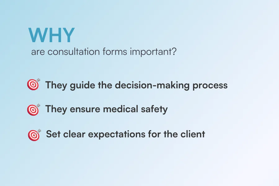 Also, digital consultation forms make it easy to collect and store these documents securely, ensuring there’s always a clear record that the client understood the risks, benefits, and nature of the treatment.