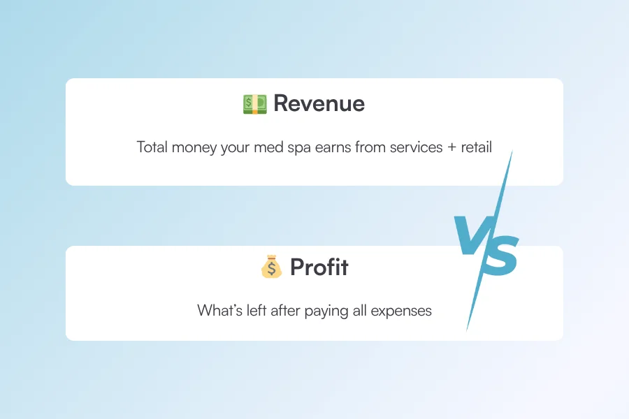 Have you ever looked at your med spa expenses and thought, “Where is all my money going?” You’re not alone.The funny thing is, most prospective med spa owners may not fully realize the full scale of their overheads until they’re knee-deep in running their business.Between rent, staff salaries, the latest medical equipment, and enough high-end skincare products to fill a small warehouse, costs can add up quickly. That’s why understanding your operational costs is critical. Knowing where every buck is going helps you plan smarter, boost profitability, and — most importantly — avoid those “uh-oh” moments when bills come in. So, let’s break down med spa operational costs, piece by piece, so you can make informed financial decisions and ensure your med spa is thriving, not just surviving. How much does it cost to run a medical spa? The costs of running a med spa aren’t just about the one-time set-up costs. There are many ongoing expenses that will either minimize or maximize its profitability. These expenses can fluctuate based on factors such as:Location: Rent amount varies by location — expect higher pricing in high-traffic urban areas than in suburban or rural spotsService offerings: Advanced treatments like lasers or premium injectables means higher equipment, products, and skilled staff costsClient volume: More regular clients is great, of course, but it also means you’ll have higher costs for staff, consumables, and product suppliesIn fact, according to industry reports, the estimated monthly operating expenses for a medical spa range from anything between $30,000 to over $70,000. What are the startup costs for a medspa? Before launching a med spa, a detailed checklist of all your essential costs is key to planning your budget and securing the right financing. Now, let’s break those costs into pieces. 📍Location and lease Securing the right location for your med spa is a major upfront expense. You’ll also have to account for in rental payments every month.Typically, it’s up to the landlords to decide the type of payment they want for the space, so here is a breakdown of the key costs involved:Lease deposits: In the US, prime commercial spaces may require up to six months’ rent upfront as a deposit, with leases ranging from $3,000 to $10,000 monthly.Monthly rent: The rent costs will vary depending on location, square footage, and traffic.Additional fees: Some leases include Common Area Maintenance (CAM) fees, property taxes, and insurance, adding $1,000-$5,000 per month.Equipment and supplies: Again, depending on the services your med spa offers, essential costs for this can range from $100,000 to $300,000.Marketing: Successful med spas need a solid marketing strategy to attract and retain business, which might cost from $20,000 to $50,000.Software solution: Investing in a management software system to streamline med spa operations can cost from $5,000 to $20,000. 🔨Renovations and equipment Reputable med spas need to offer clean, inviting, and professional spaces. To transform your med spa into a functional, client-ready facility, you’ll need to invest upfront in renovations and high-quality equipment.The cost of those things will depend on:The current space condition: If the space is completely empty you’ll need to deal with build-out costs — walls, plumbing, and electrical. Even a ‘finished’ space may need upgrades for med spa standards.The size of the space: Bigger space = more square footage to renovate and equip.The services you offer: You’ll need high-quality injectable supplies, consumables, machines, treatment chairs, and so on.Depending on whether you’ll need to renovate the space and transform it to fit a med spa environment, costs can range from $50,000 to over $150,000. 📜Licensing and permits In the US, all med spas must obtain licenses and permits to operate legally. Again, these are costs that widely vary based on location, the services you offer, and the regulations in the state you’re operating from. Here are some of the licenses/permits you may need in your med spa:☑️Business licenses and permits to operate legally ☑️Professional licensing for medical professionals☑️Medical director licenses ☑️Health department permits The average costs for these licenses and permits can range from $10,000 to $30,000. 👩⚕️Initial staffing and training Staffing costs are one of the biggest expenses at med spas.Not only are there the initial costs of recruiting a team, but you’ll also be paying ongoing salary expenses every month. And that’s not all. Providing quality training for your employees should be a non-negotiable investment, becauseSkilled injectors and estheticians ensure safer, high-quality treatments while building client trust, which keeps customers coming back.Even experienced staff need ongoing training to stay updated on industry trends, evolving protocols, safety and hygiene standardsPrioritizing hiring and training ensures your med spa is set up for long-term success. 📢Promoting med spa opening A grand opening for a med spa that’s about to be open can set the tone for its success. However, it can get very pricey if you don’t plan carefully.Before getting carried away with finding the perfect balloon arch backdrop to capture those med spa opening moments, put your business head on. Let’s break down the costs you’ll need to factor in for an event:Local advertising: You’ll need to budget costs for print media, adverts in local newspapers or magazines, radio advertisements, and good old-fashioned advertising, such as mailing flyers or postcards.Social media campaigns: You’ll also need to set aside budget for social media ads to target beauty-conscious locals and even to hire a professional photographer or videographer to generate some buzz.Event costs: Med spa promotion costs for decorations, catering, a DJ, gift bags, or giveaways will add more expenses to your budget. ⚖️Le