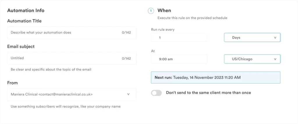 You can schedule thoughtful touches like birthday messages or follow-ups after high-ticket services. It allows for easy segmentation by service type or client stage, so your emails always feel personal, relevant, and timely.