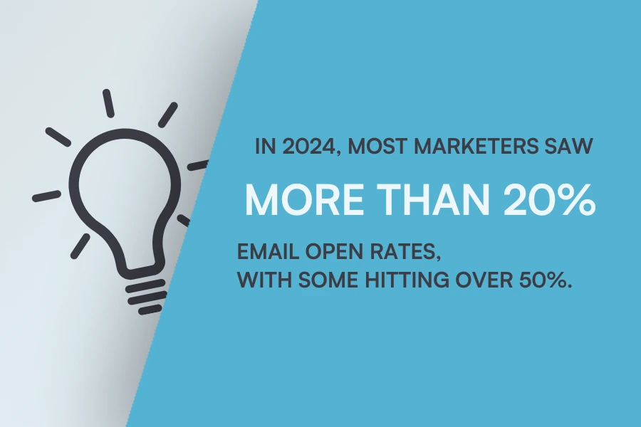 According to a Mailmodo survey, most marketers in 2024 had email open rates of more than 20%, with some hitting over 50%.