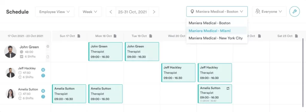 When managing multiple locations, you usually have more people to schedule, often across different branches. That’s where things can get tricky.