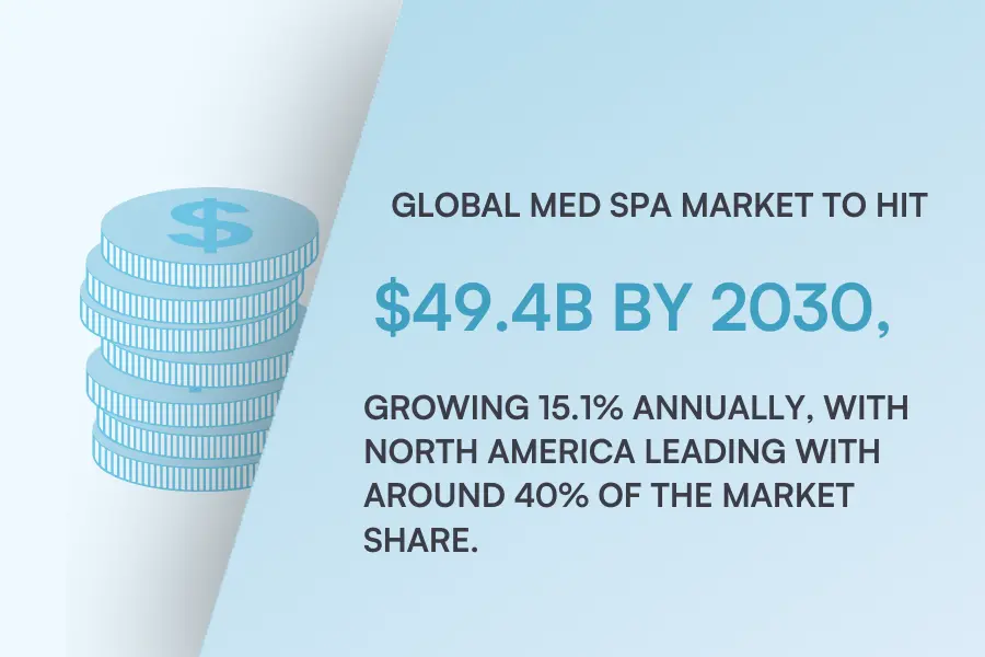 According to Grand View Research, the global medical spa market is projected to reach USD 49.4 billion by 2030, with a 15.1% CAGR from 2024 to 2030.