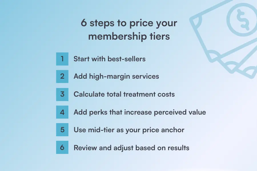 • Start with your best sellers. Base your tiers on what clients already book often, like facials, Botox, body contouring, or chemical peels.