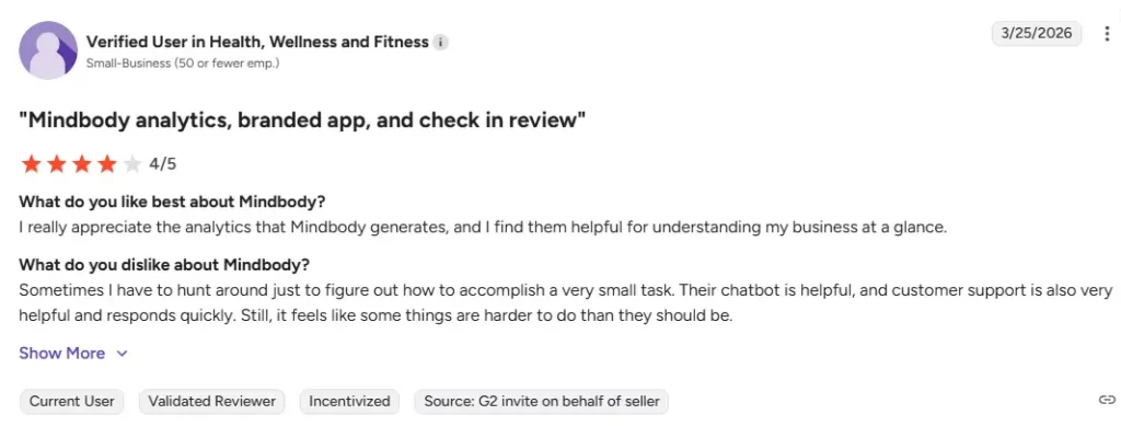 Customer support quality is mixed across platforms. On G2, Mindbody holds a 3.7 out of 5 rating, with recurring complaints about slow response times and unresolved billing issues. Pricing has also become a recurring frustration: users on G2 and Capterra consistently report unexpected price increases that were not adequately communicated.
