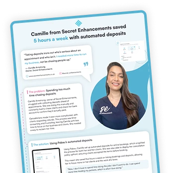 She didn’t have an easy way to take deposits for appointments. That meant she was constantly having to chase people and check her banking app to make sure that clients who were supposed to pay had actually paid. This had a knock-on effect and meant that Camille wasn’t able to spend as much time growing her business as she would have liked.