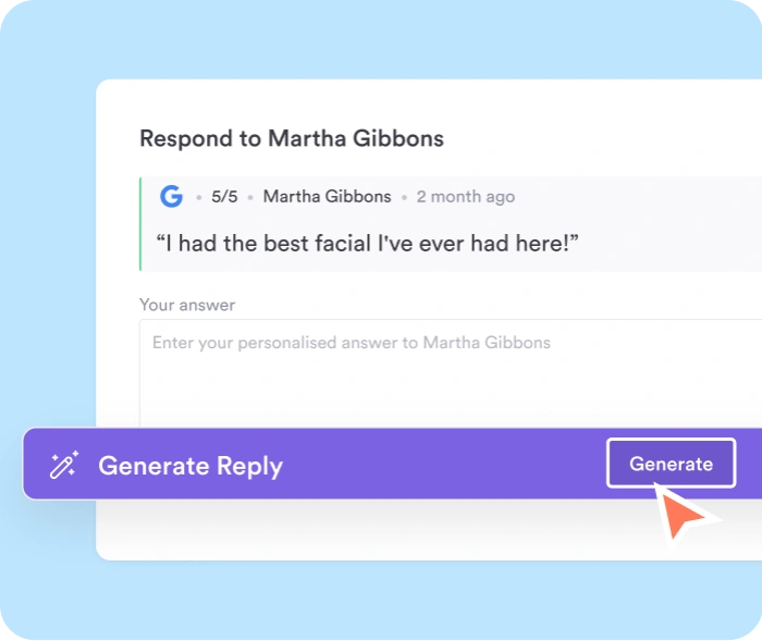 Generate thoughtful, on-brand review replies in a single click.