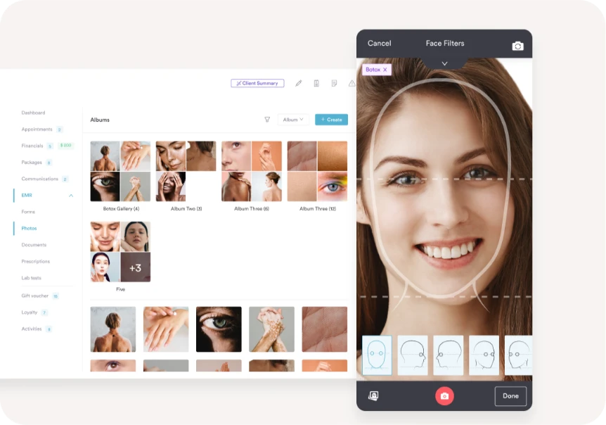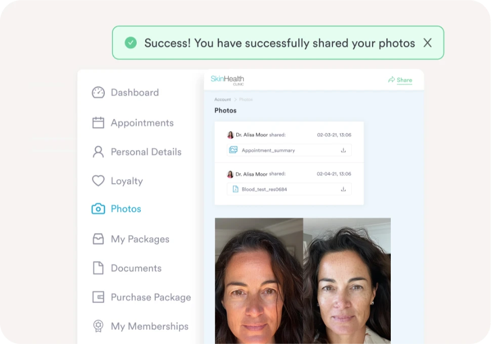 Use the photography feature alongside the client portal to share images securely. Clients can log in, view their before and after photos, and track their results — all in one safe, professional space.