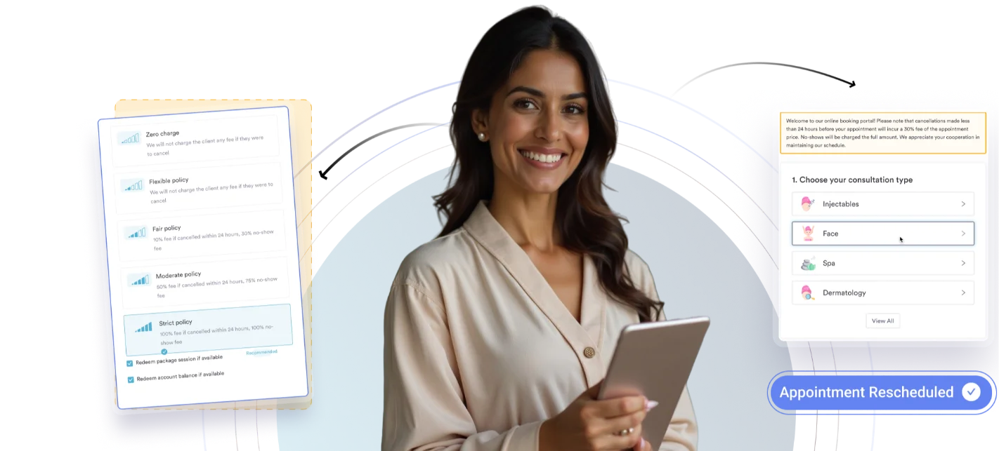 In Pabau, you can choose from a variety of policy types, from flexible, fair, moderate, and strict, so you can customize it to suit your practice. You can even create your own custom policy, if you wish!