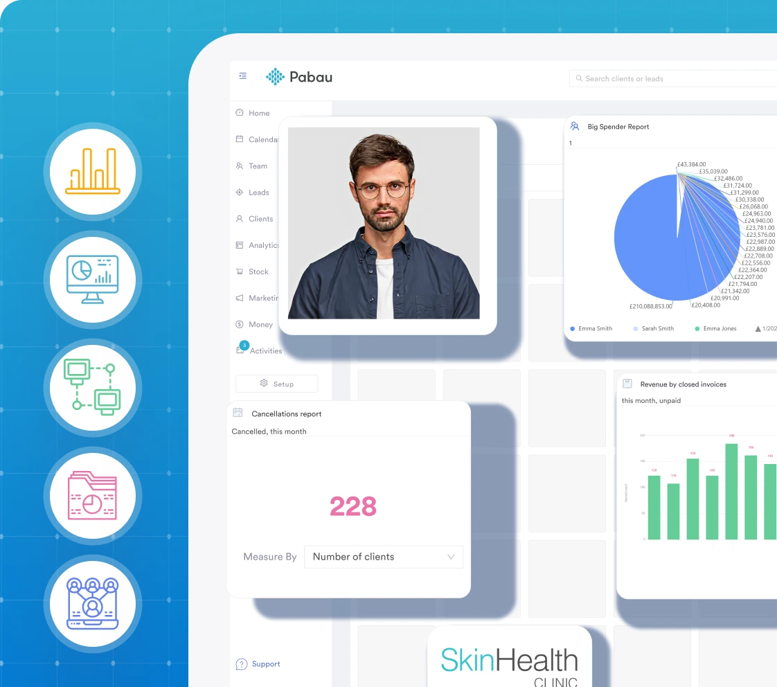 Pabau Insights Plus gives clinics real-time visibility into bookings, revenue, and practitioner performance, helping them make smarter decisions and grow efficiently.