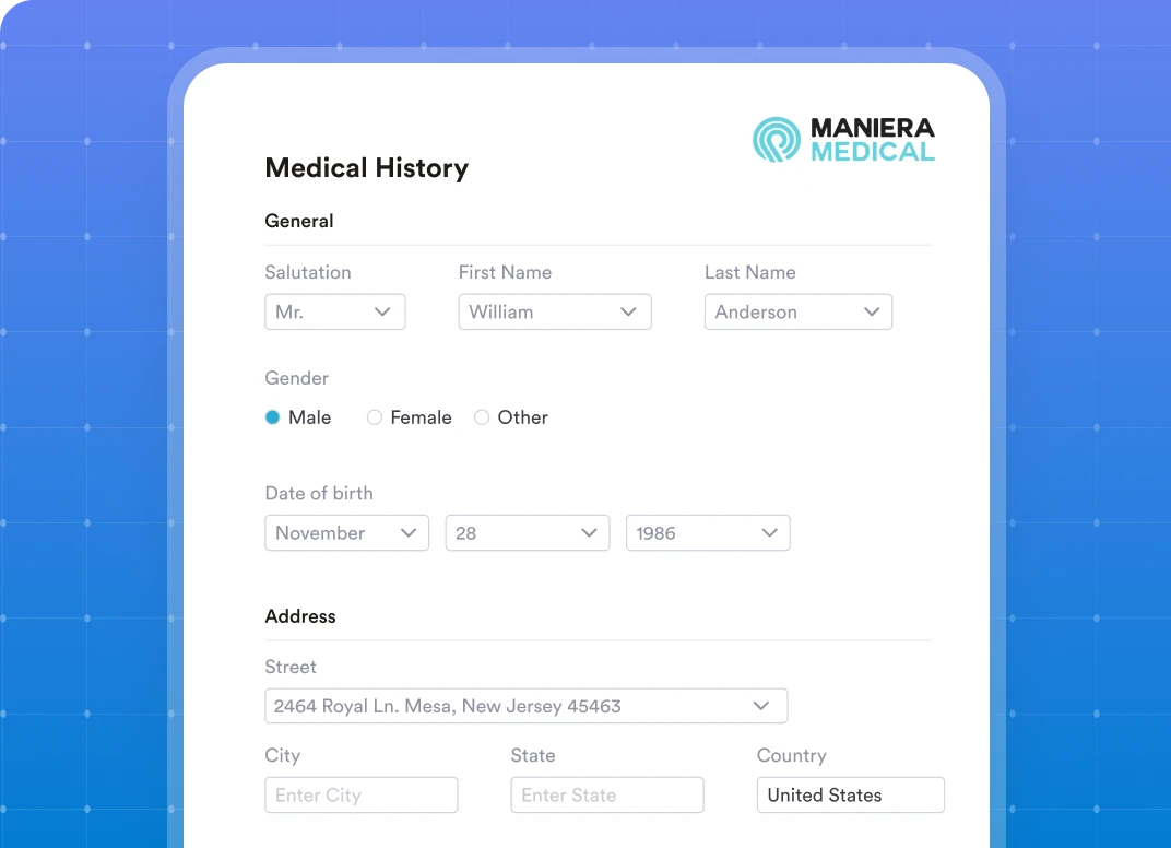 Create digital forms for every stage — patient intake, consultations, consent, and follow-ups — all tailored to your clinic.