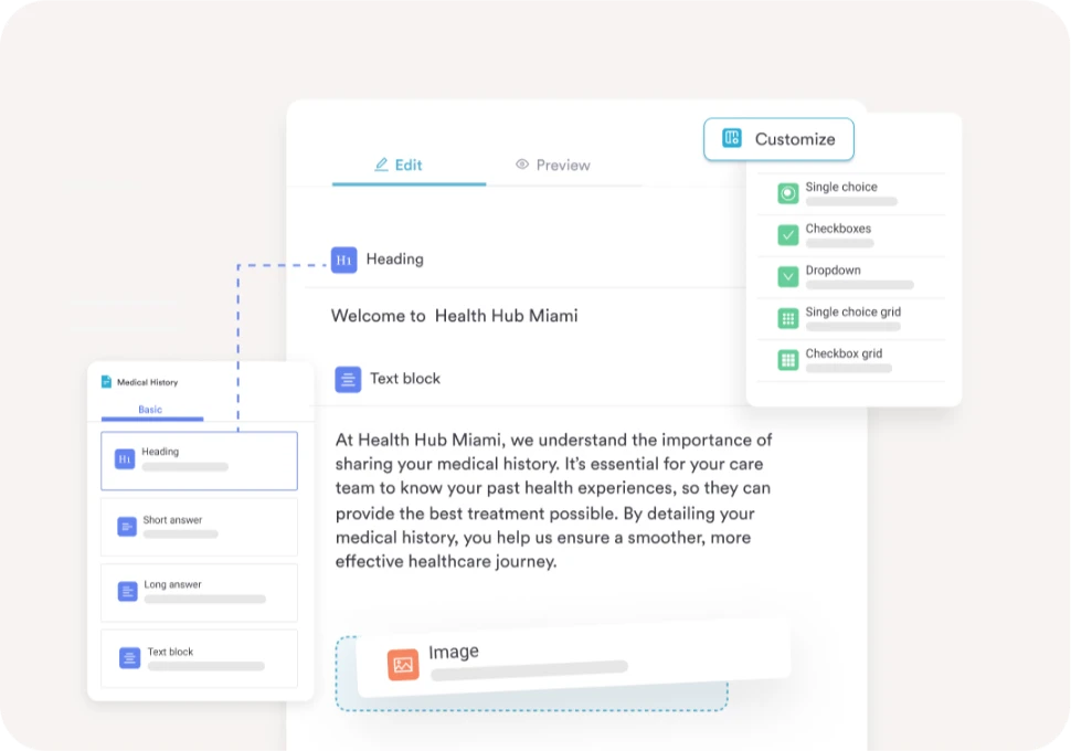 The quickest way to get your patient intake software set up, without sacrificing flexibility.