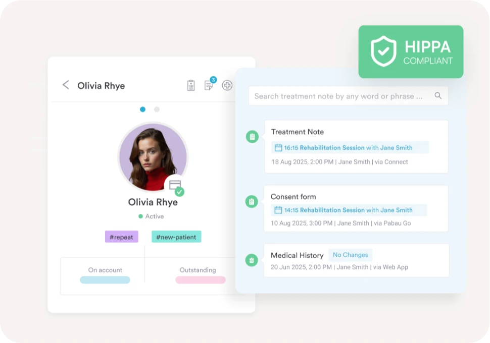 Yes. Pabau supports HIPAA-compliant forms, secure patient communication platforms, and encrypted storage of clinical data to maintain HIPAA compliance and protect patient information.