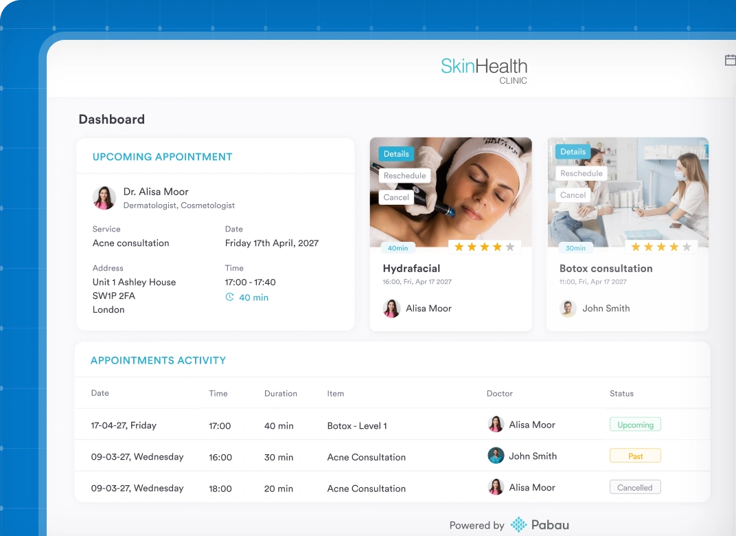 See how Pabau gives you all the tools you need to reduce admin, improve the patient experience, and support sustainable growth.
