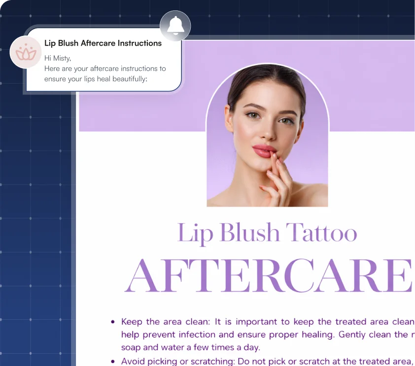 Keep clients informed, prepared, and supported with automated instructions that guide them before and after every treatment. Save your team hours of manual work while ensuring consistent, professional care for every client.