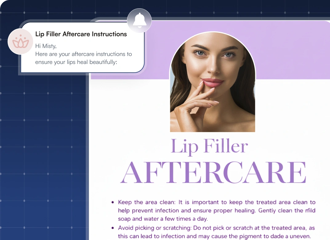 Leaflets get lost. Verbal instructions get forgotten. Digital pre- and post-care communications create a timestamped, documented record of every instruction sent to every client.