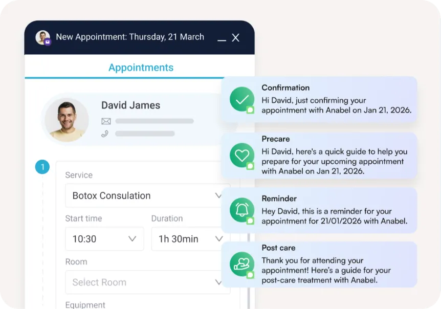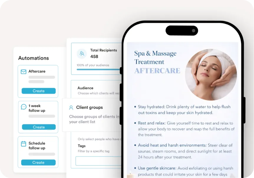 Automate pre- and post-care communication across all your services — and save your team hours of admin every week.