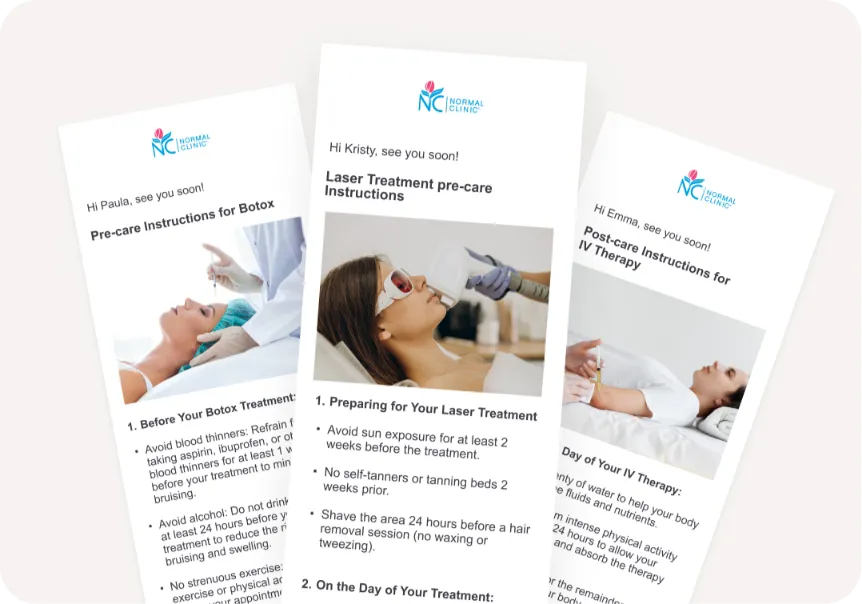 Instructions are sent automatically based on your settings. You choose the timing, such as a day before treatment or immediately after, so clients get the information when it’s most useful.