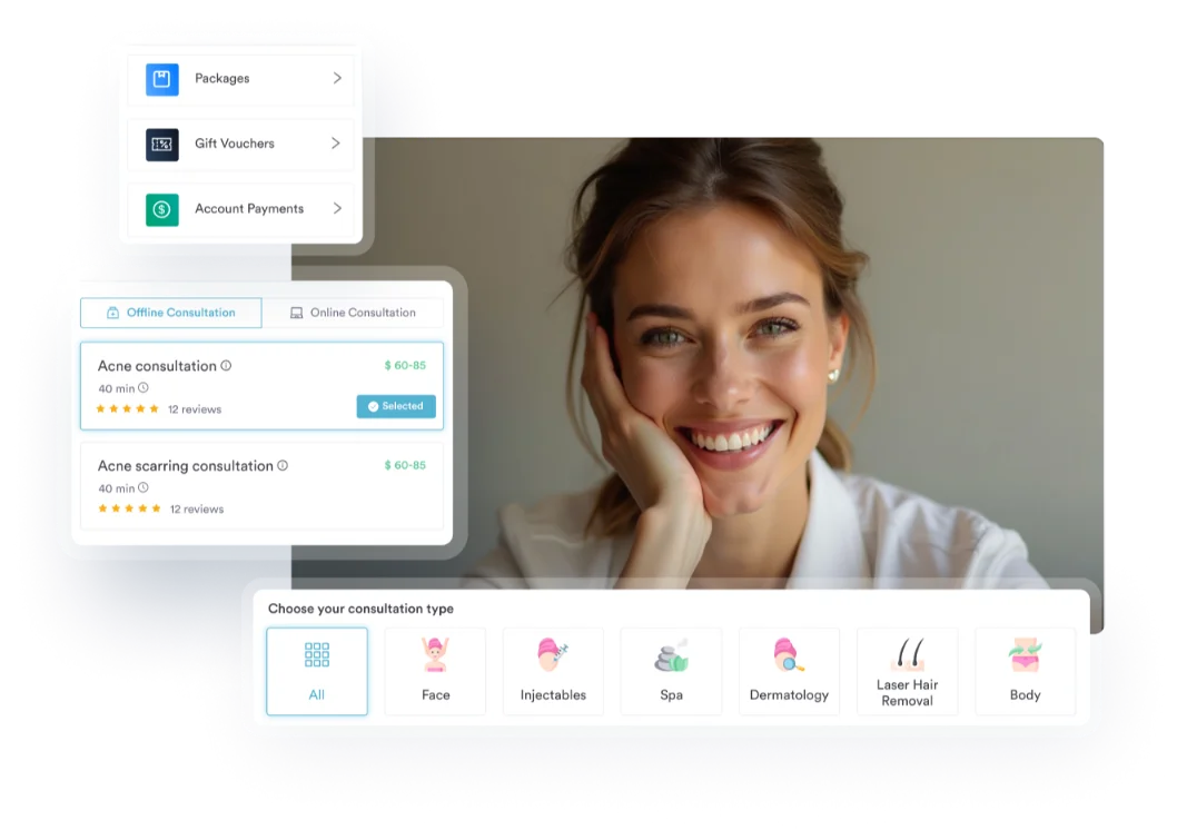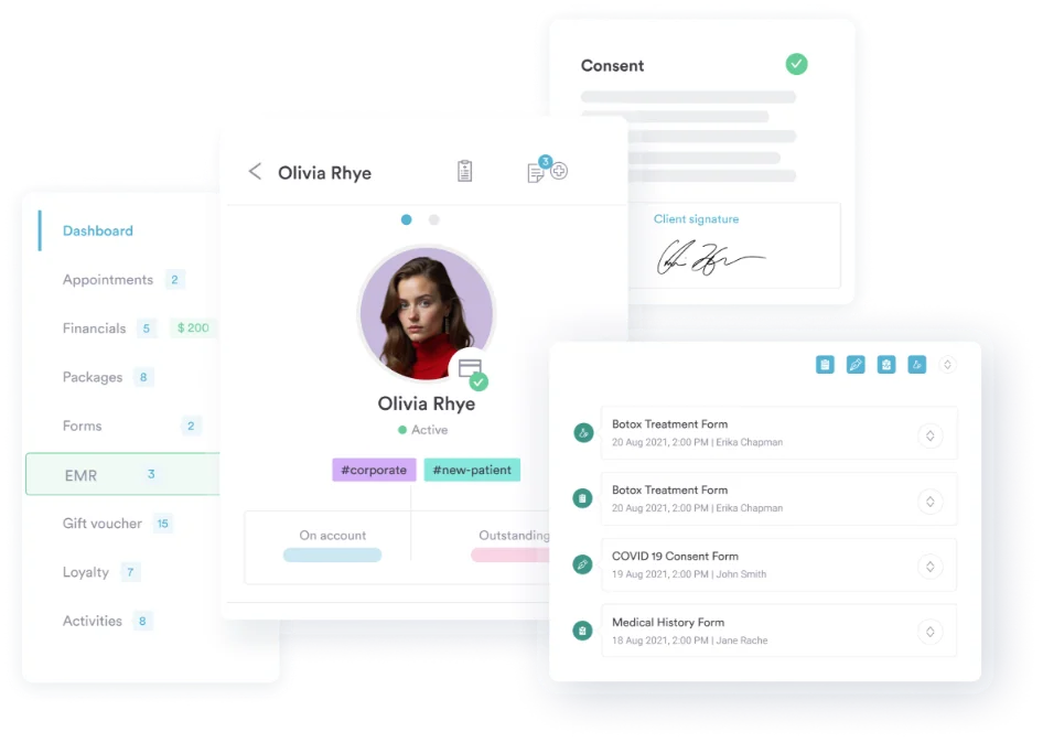 Save time and skip the back-and-forth phone calls and messages. Pabau’s online booking tool means clients can book 24/7, complete intake and consent forms automatically, and it even secures deposits.