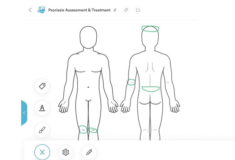 Use body charts to document injection sites, lesion locations, and treatment areas.
