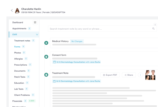 Build complete client histories with treatment photos, notes, and personalised care plans that drive results.