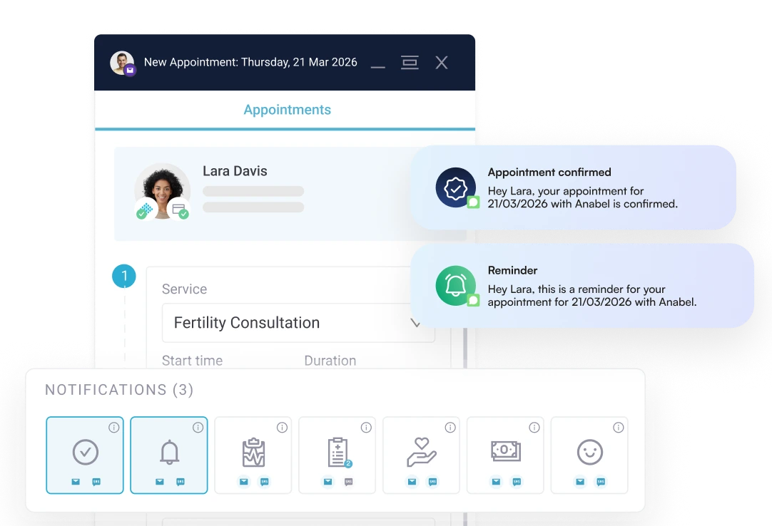 Patients benefit from online appointment scheduling, automated patient reminders, self-service access to lab results and medical history through the patient portal, and clear communication throughout their IVF treatment journey—reducing anxiety and phone calls.