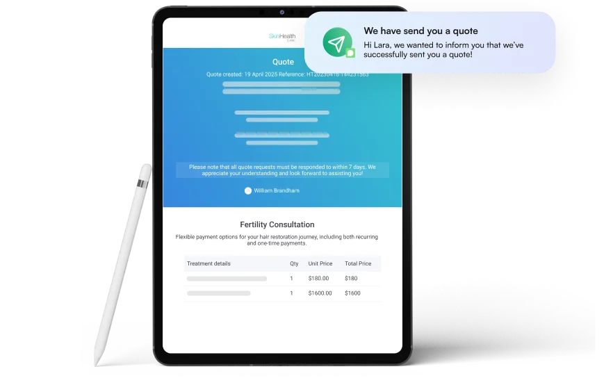 Generate and send quotes outlining treatment costs, expected visits, and package options.