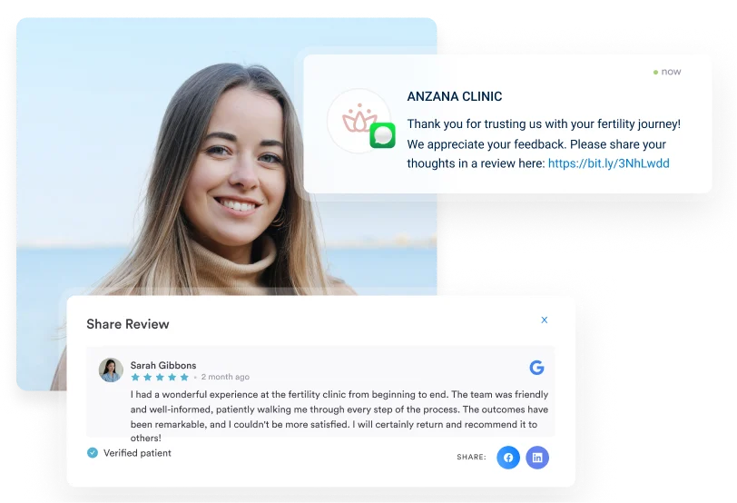 Prompt patients to leave reviews automatically after successful outcomes through integrated review management.