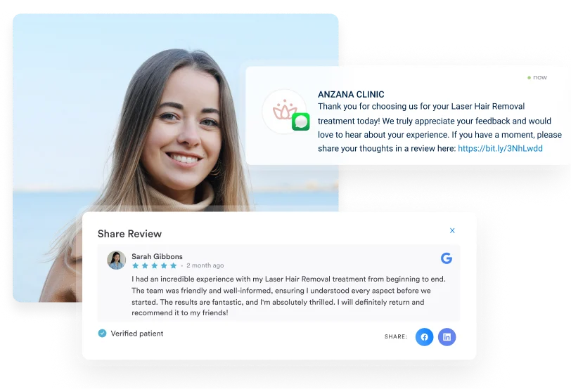 Prompt clients to leave reviews automatically after laser treatments and see your online reputation grow.