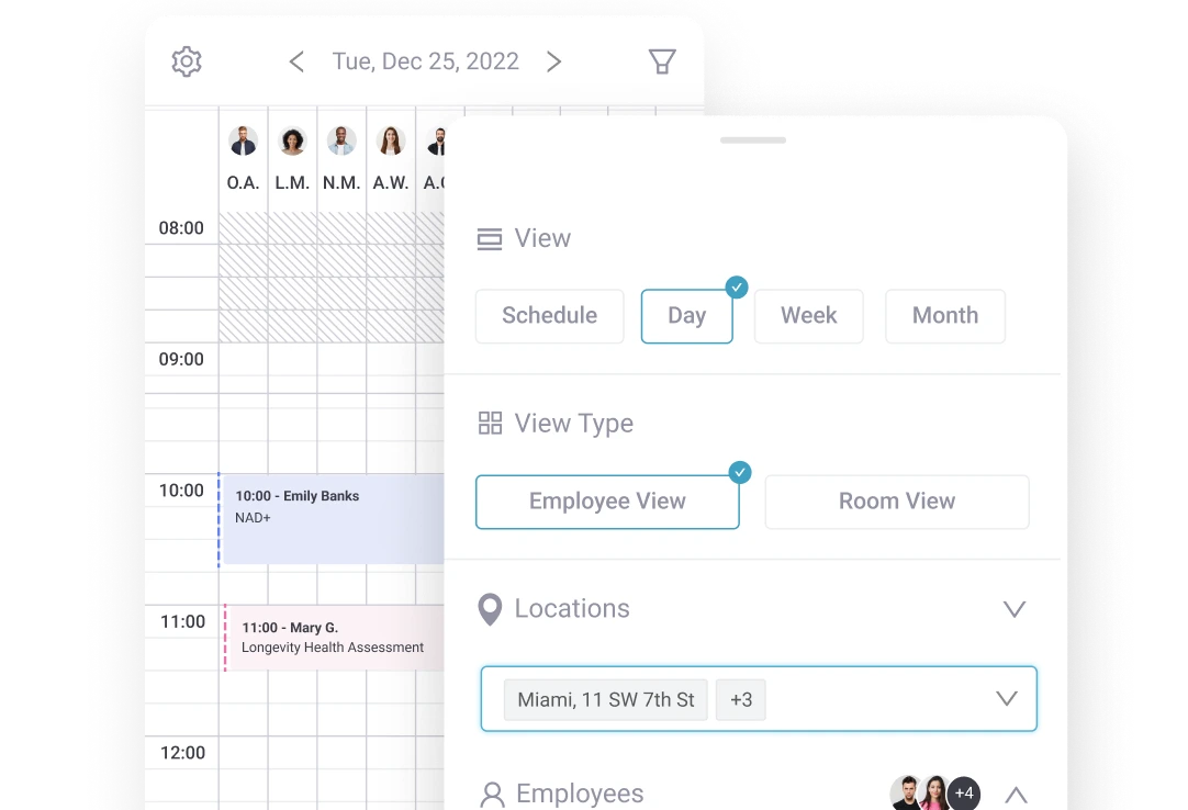 Schedule practitioners, rooms, and locations from one calendar