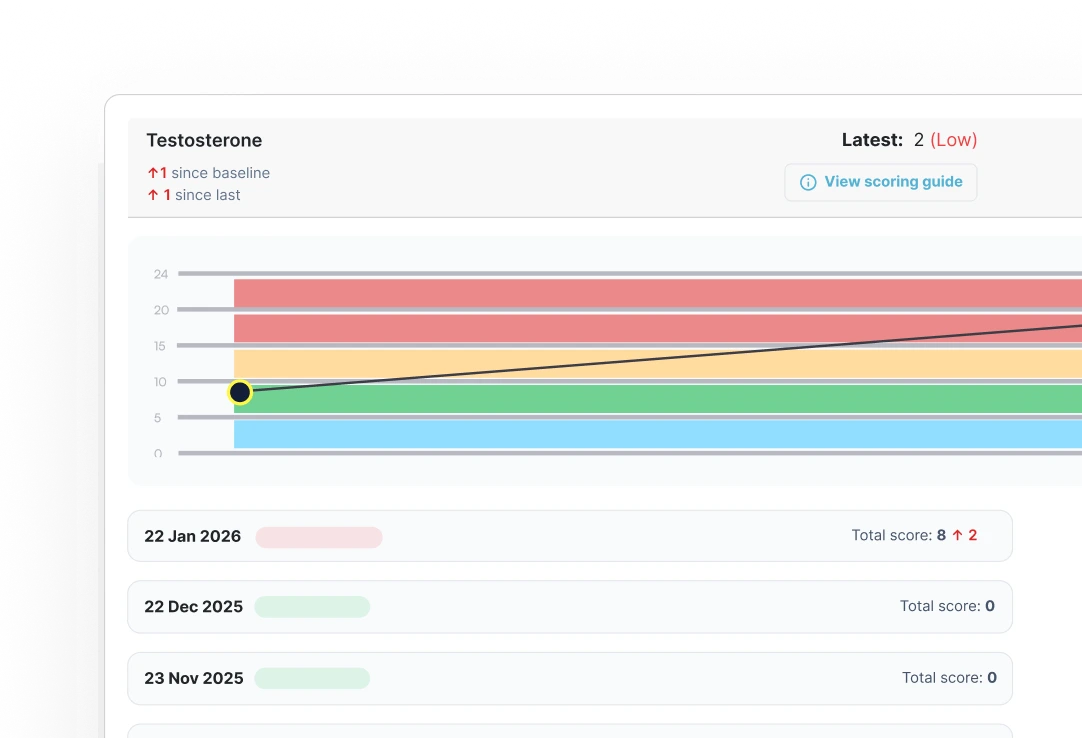 Monitor biomarker data, hormone markers, and key health indicators over months and years, all within a single patient record.