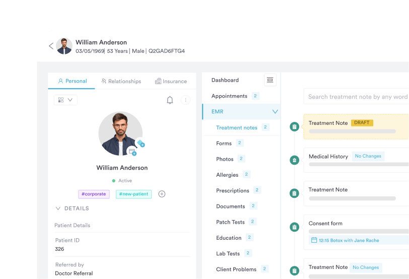 Pabau has a full in-built EMR for managing patient records. All patient information—from medical history forms and treatment notes to communications—is stored digitally. A single client card acts as a hub so staff can access a patient’s demographics, medical record, and any notes or communications with one click.