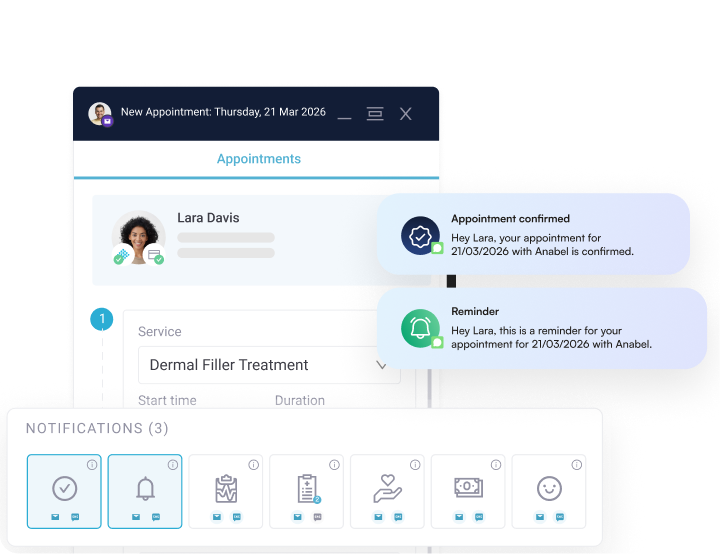 Automated appointment reminders via SMS and email go out before every appointment so clients don’t forget, and last-minute gaps stay rare.