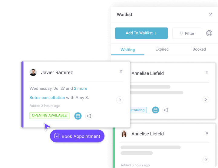 When cancellations happen, waitlisted clients are notified instantly so gaps are filled without manual calls or lost revenue.
