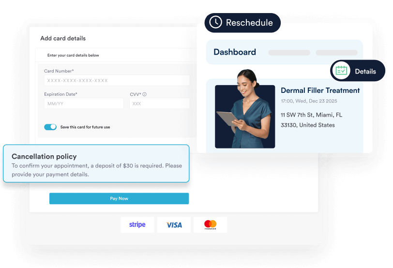 Let clients book online 24/7, reduce no-shows with smart reminders, and get paid instantly with flexible payment options.