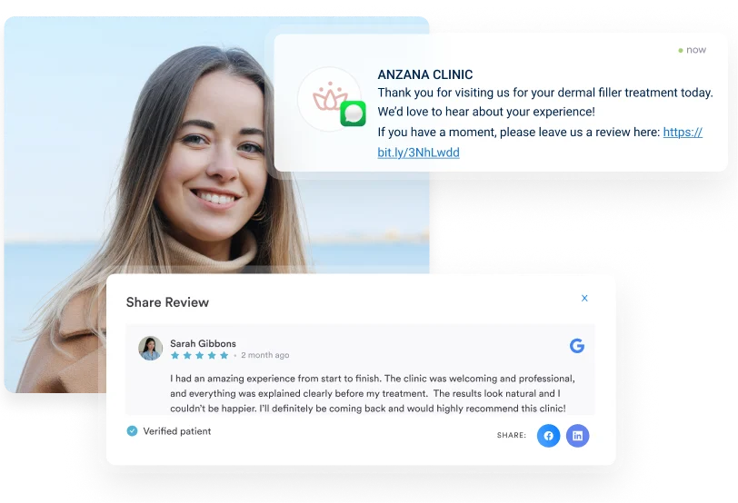 Prompt clients to leave reviews automatically after treatments through integrated reputation management, so your medspa’s reputation grows without chasing feedback.