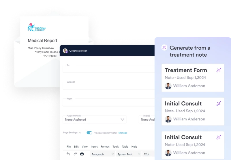 AI-assisted dictation captures consultation details and treatment notes in real time, so documentation workflows stay structured and clinicians spend more time with patients — less time writing after appointments.
