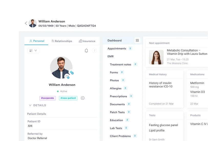 Pabau keeps all biomarker data, blood pressure readings, and lab results in one record, so clinicians can track metabolic syndrome indicators and cardiometabolic health markers longitudinally and adjust care accordingly.