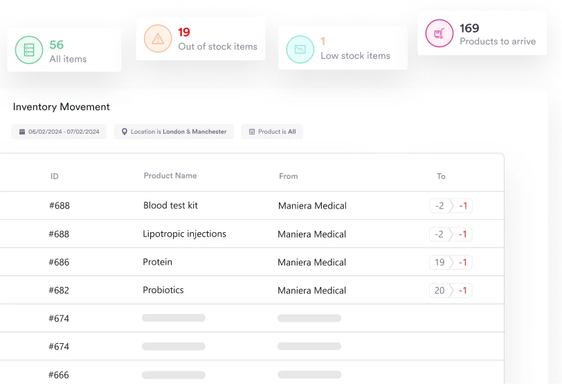 Track stock levels in real time, set reorder alerts, and log usage automatically so shortages don’t disrupt treatment days.