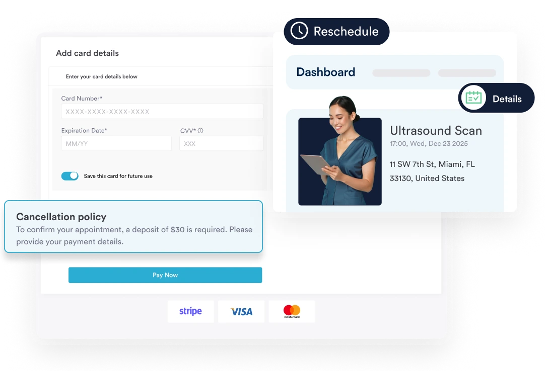 24/7 online booking with deposit collection means patients book when it’s convenient for them and appointments are secured upfront — reducing front-desk volume and last-minute cancellations.