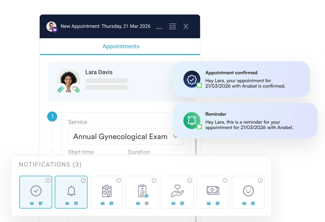 Automated appointment reminders via SMS and email go out before every visit so patients don’t miss critical prenatal care checks or wellness appointments, keeping care on schedule and reducing gaps.