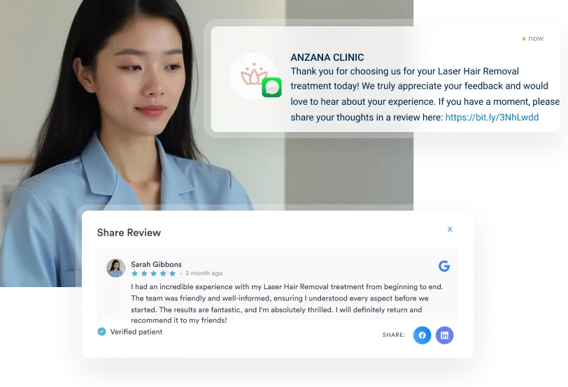 Prompt patients to leave reviews after visits through integrated reputation management so your practice’s online presence grows organically without chasing feedback or managing multiple platforms.
