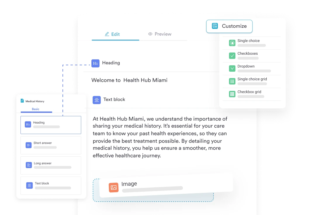 Customize forms into a specialty-specific template library that includes structural assessment tools, body charts and more, and document findings quickly and accurately.