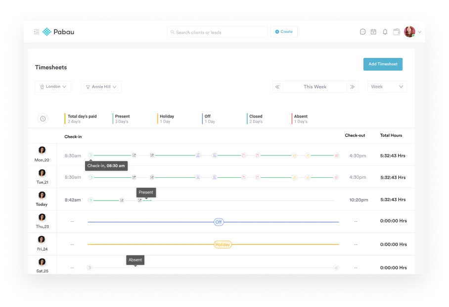 Digital timesheets track clock-ins against scheduled shifts so you can spot overtime, monitor labor costs, and ensure adequate coverage without manual timesheet collection.