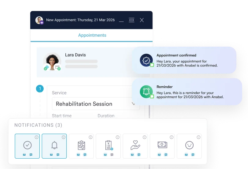 Yes. Automated SMS and email reminders go out before every appointment, reducing no-shows and keeping patients on track with their plan of care.