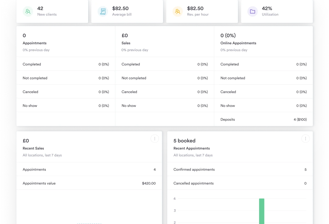 24/7 online scheduling systems with deposit collection at checkout.