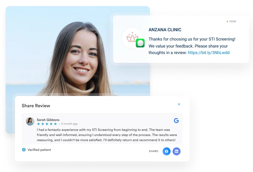 Automated review requests go out after treatment milestones through integrated review management.