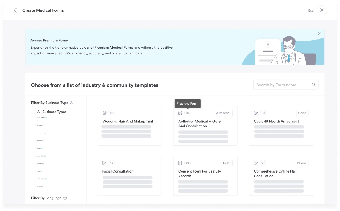 Don’t have time to spend building your own forms? Use our pre-built templates and customize them to your practice – we’ve got thousands to choose from!